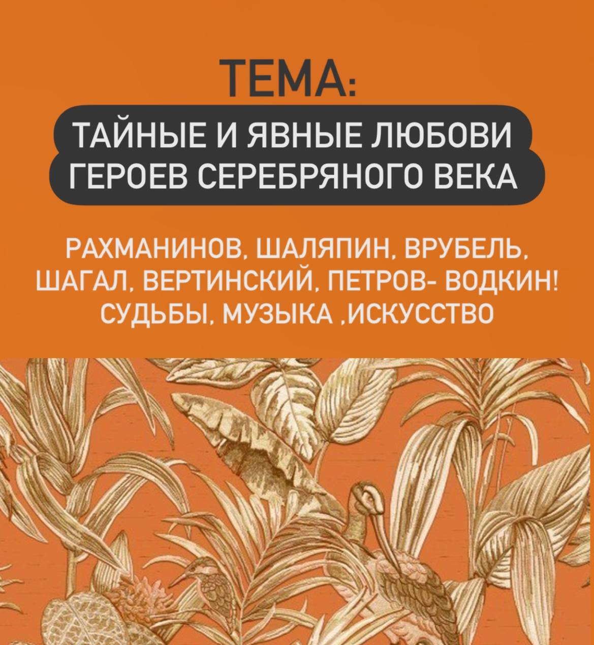 Поговорим не только об их искусстве, но и о судьбах, тайнах, женщинах, искушениях, противоречиях, взлётах и падениях… и о том, как формировался самобытный почерк этих мастеров и как они вошли в историю русского искусства рубежа XIX-XX века